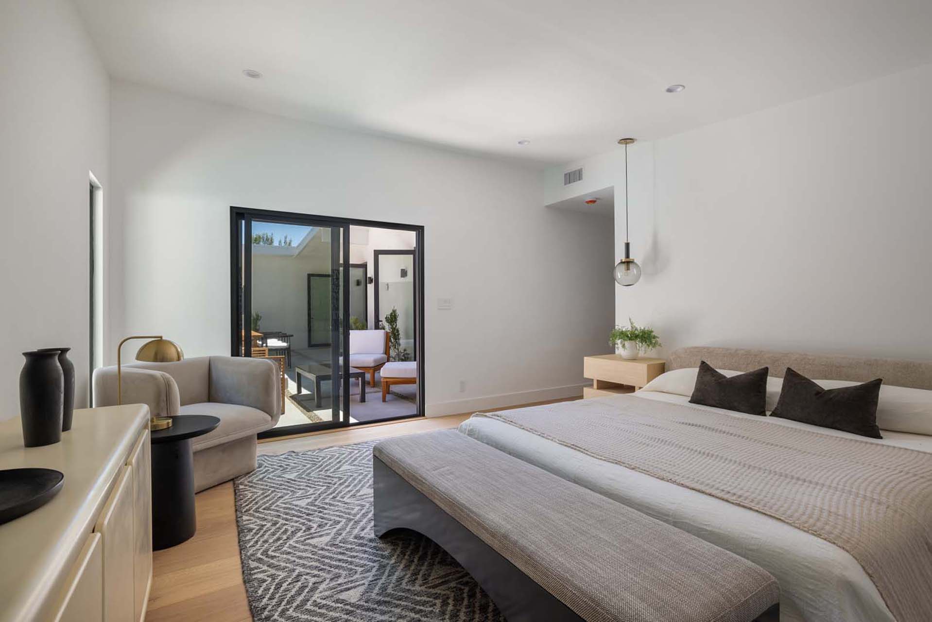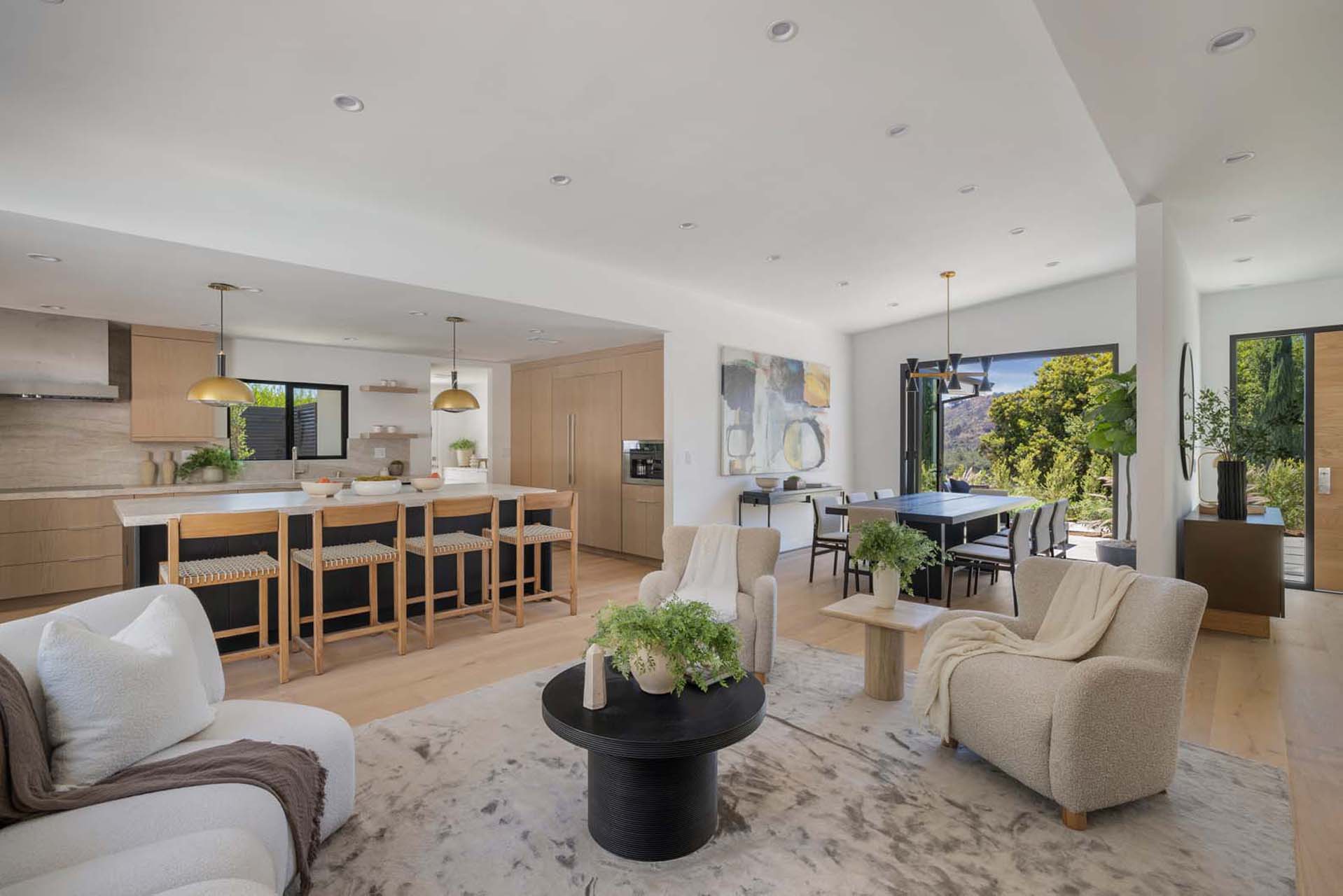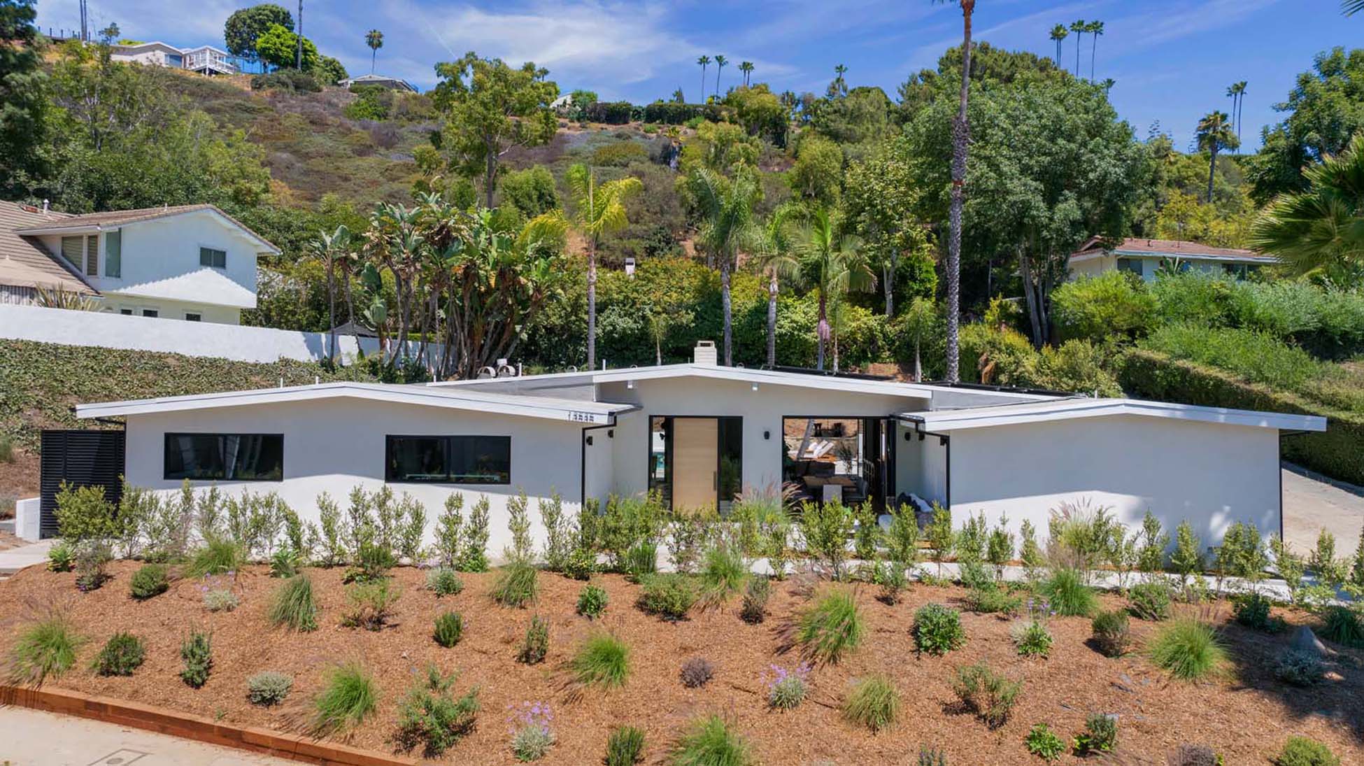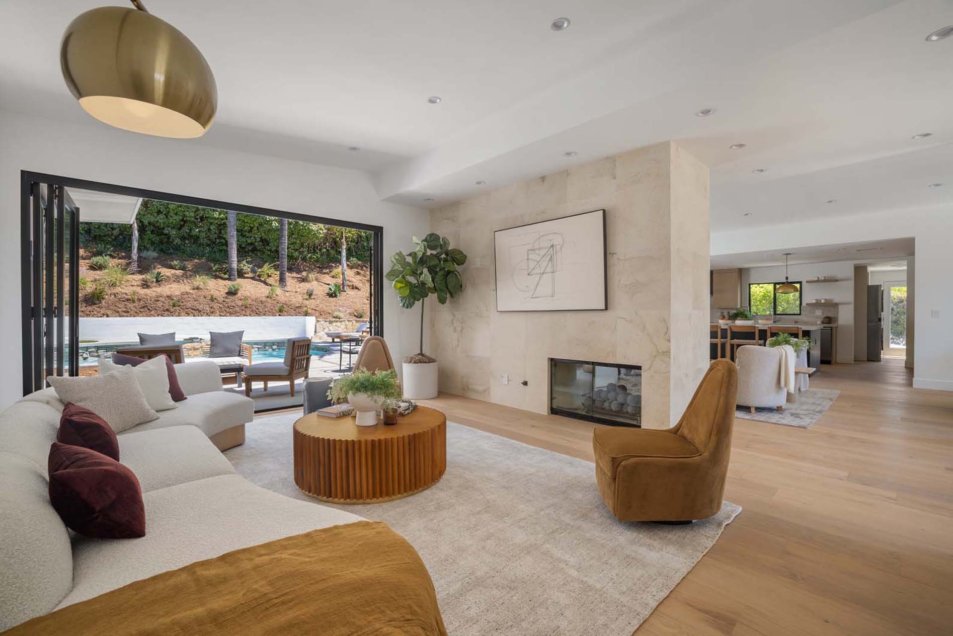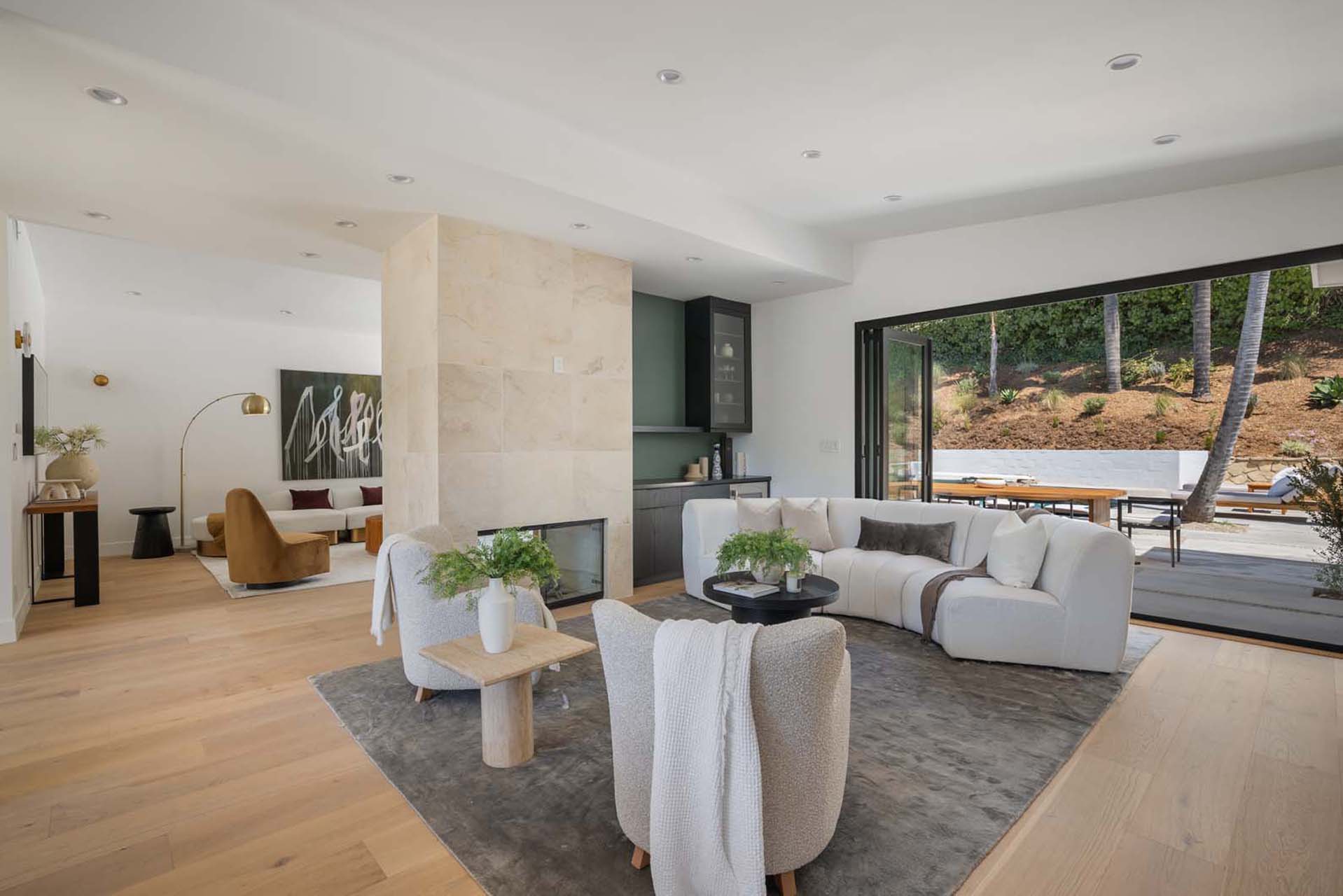 Brand new exceptional remodel of a circa 1963 Mid-Century, 13535 Bayliss Road evokes the relaxed sophistication of a pitch-perfect Palm Springs retreat in the heart of Brentwood. With modern architectural lines and an expansive single-story footprint, this sun-soaked residence blends the timeless integrity of Mid-Century Modern design with the elegance and comfort of modern luxury. Walls of folding glass doors frame views of the sparkling pool and greenery, transforming the home into a chill weekend getaway, perfect for lounging under the sun, dining al fresco, or evening gatherings under the stars. Inside, elegant materials meet luxury upgrades in a refined chef’s kitchen with Miele appliances, custom cabinetry, and fine Italian porcelain center island and countertop surfaces. Airy primary retreat with ensuite bath accented with Cocci Sicilian Bianco stone, capturing the serenity of a resort-inspired spa. Secondary bedroom baths enhanced with terrazzo tile flooring, honoring the home’s heritage. Inviting European white oak floors throughout the open living spaces. Select lighting by Viro and Aerin Lauder complete the interior spaces with a refined glow, shifting from bright and airy by day to soft and atmospheric by night. A rare opportunity to own an artfully designed Brentwood oasis offering unparalleled amenities and comfort in a private, serene setting.