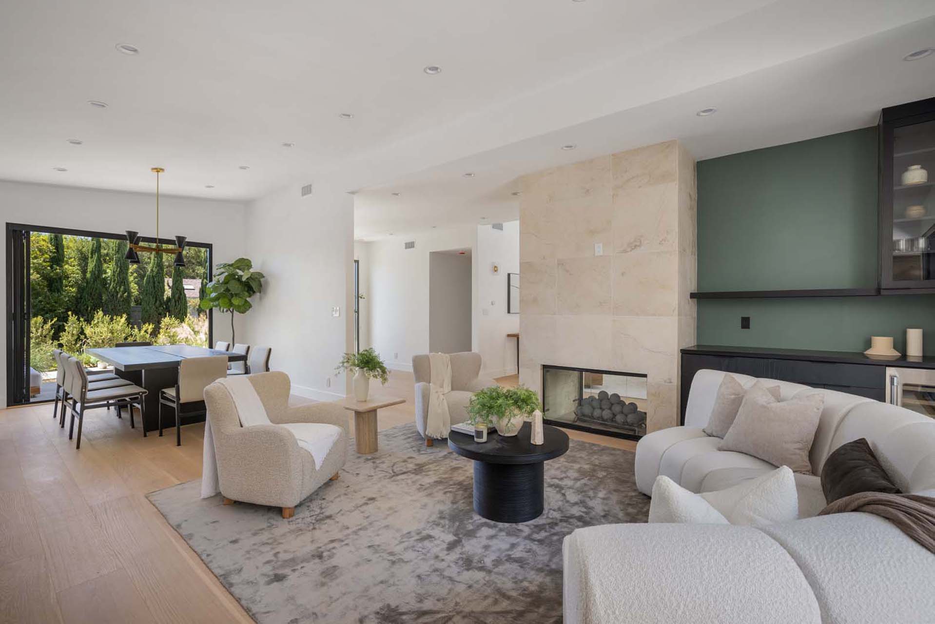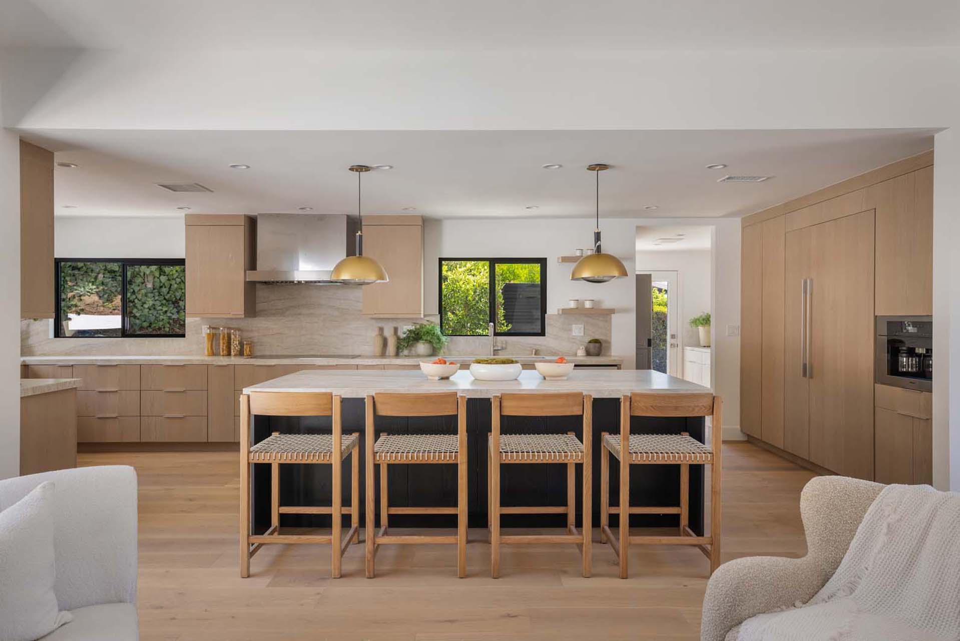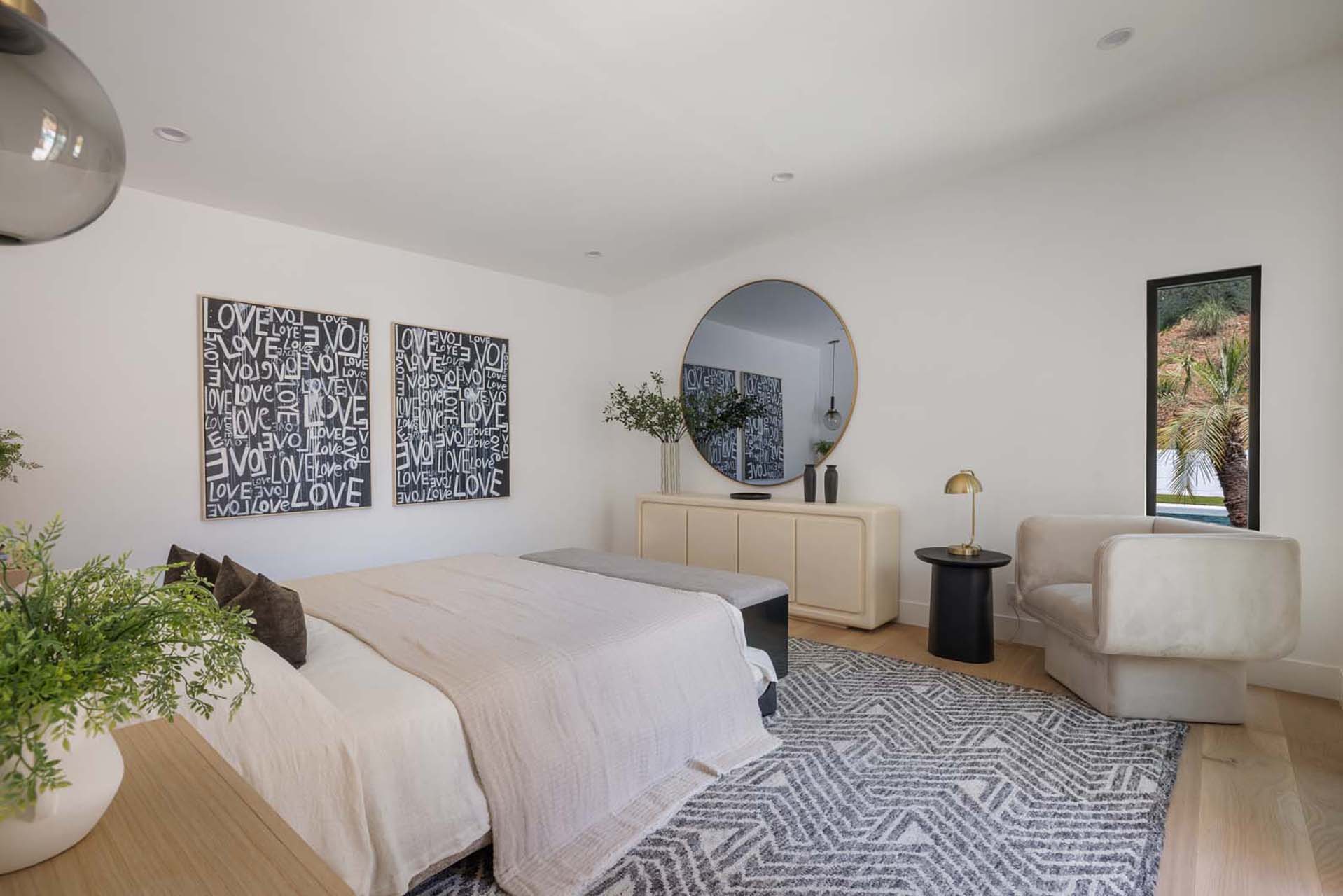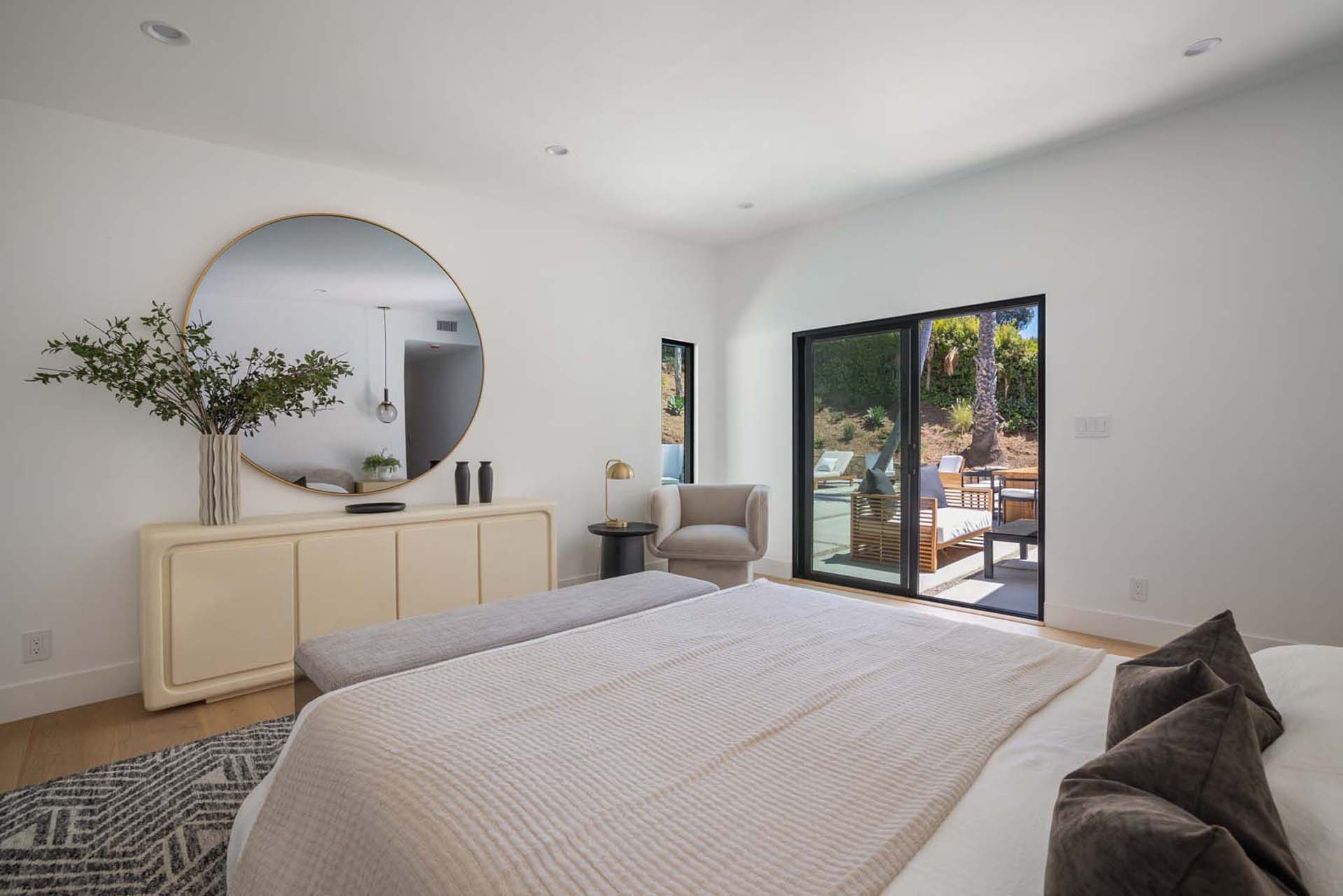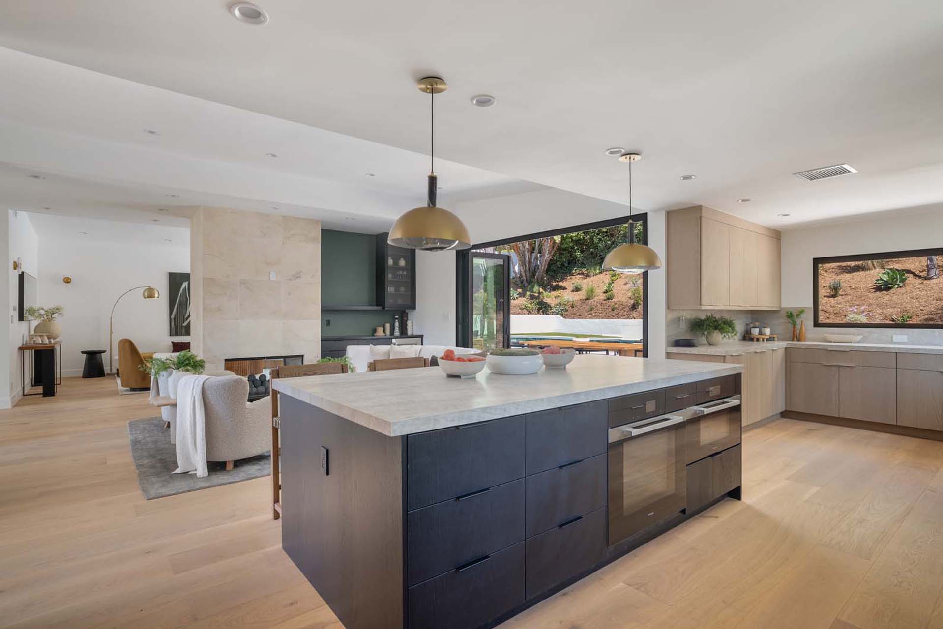 Brand new exceptional remodel of a circa 1963 Mid-Century, 13535 Bayliss Road evokes the relaxed sophistication of a pitch-perfect Palm Springs retreat in the heart of Brentwood. With modern architectural lines and an expansive single-story footprint, this sun-soaked residence blends the timeless integrity of Mid-Century Modern design with the elegance and comfort of modern luxury. Walls of folding glass doors frame views of the sparkling pool and greenery, transforming the home into a chill weekend getaway, perfect for lounging under the sun, dining al fresco, or evening gatherings under the stars. Inside, elegant materials meet luxury upgrades in a refined chef’s kitchen with Miele appliances, custom cabinetry, and fine Italian porcelain center island and countertop surfaces. Airy primary retreat with ensuite bath accented with Cocci Sicilian Bianco stone, capturing the serenity of a resort-inspired spa. Secondary bedroom baths enhanced with terrazzo tile flooring, honoring the home’s heritage. Inviting European white oak floors throughout the open living spaces. Select lighting by Viro and Aerin Lauder complete the interior spaces with a refined glow, shifting from bright and airy by day to soft and atmospheric by night. A rare opportunity to own an artfully designed Brentwood oasis offering unparalleled amenities and comfort in a private, serene setting.