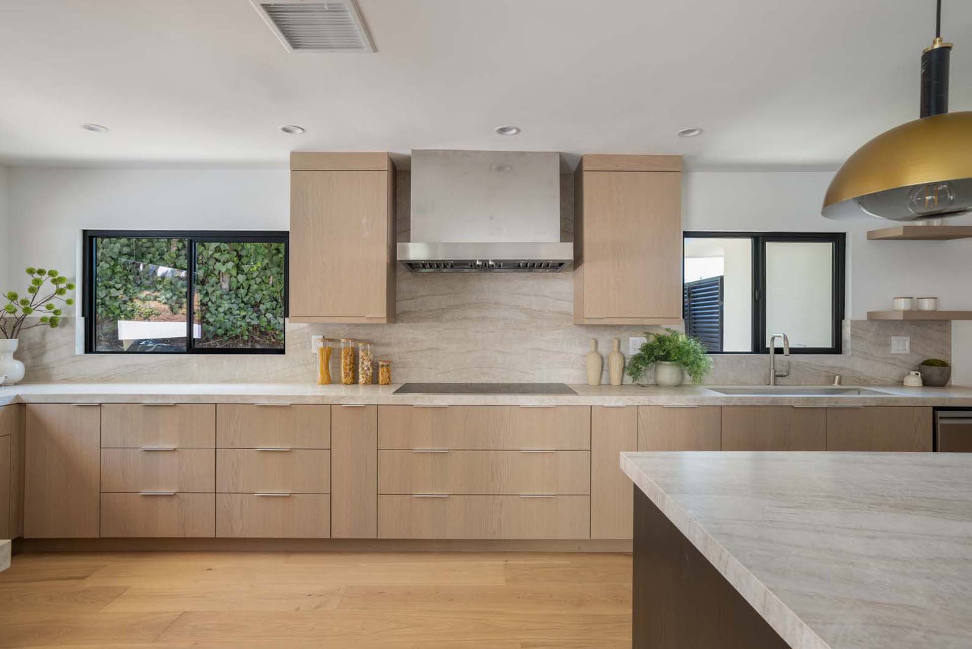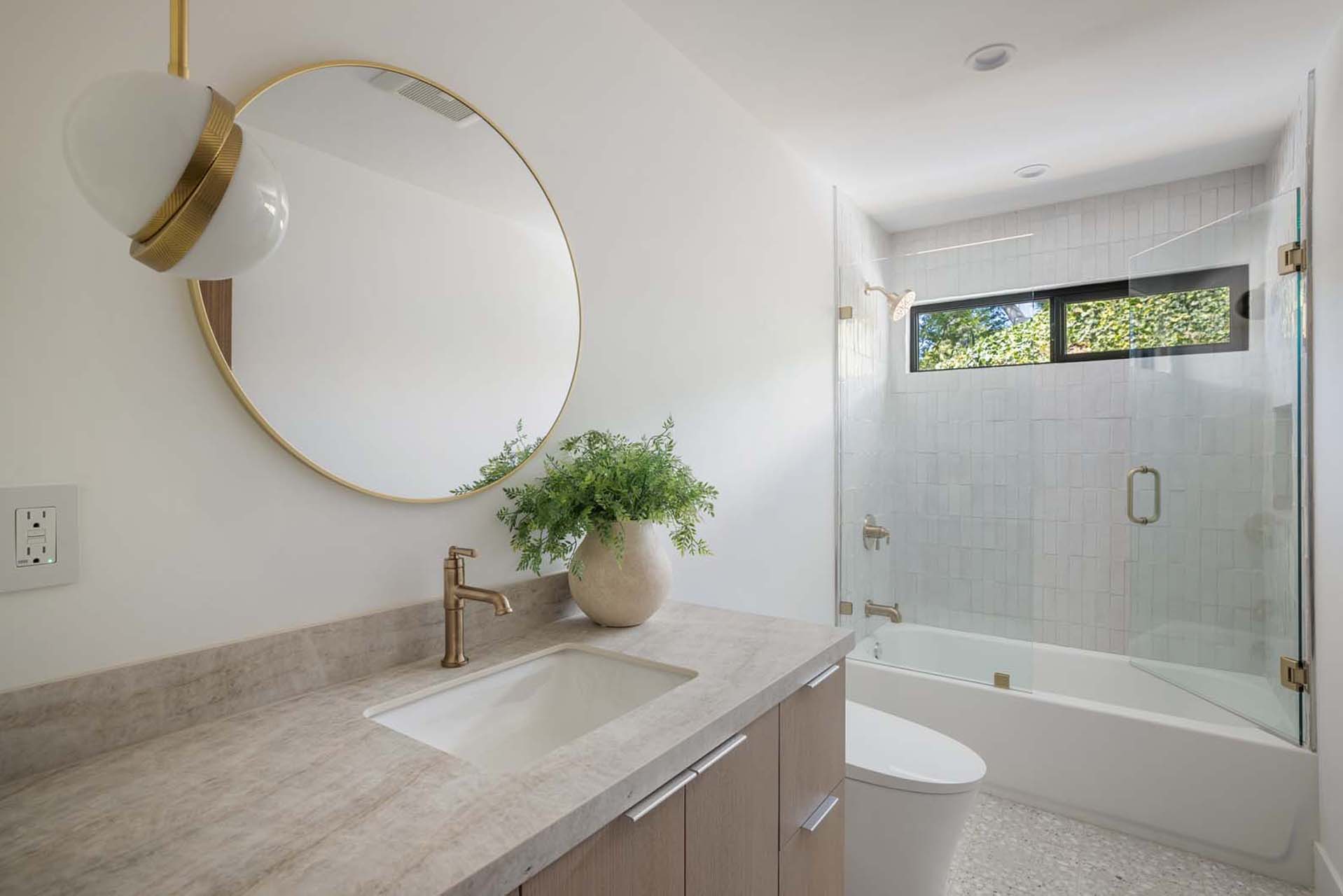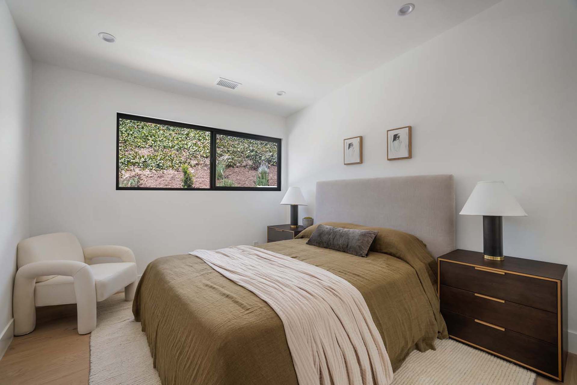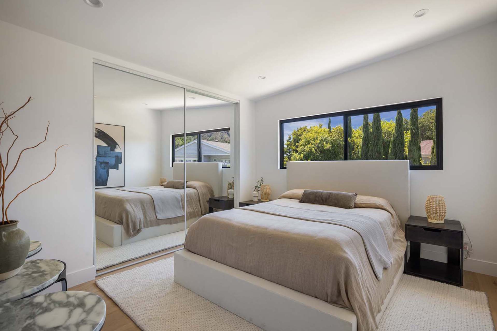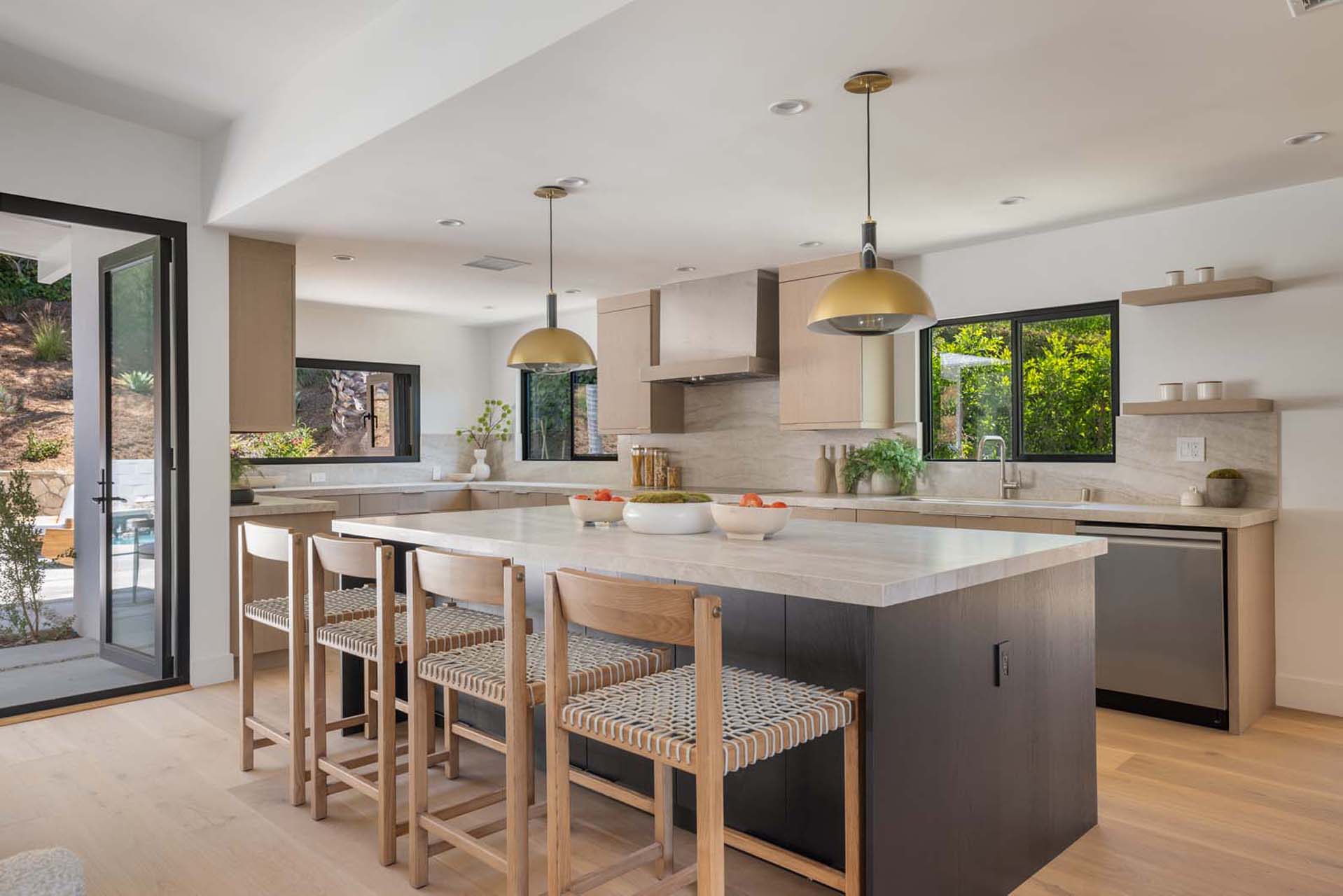 Brand new exceptional remodel of a circa 1963 Mid-Century, 13535 Bayliss Road evokes the relaxed sophistication of a pitch-perfect Palm Springs retreat in the heart of Brentwood. With modern architectural lines and an expansive single-story footprint, this sun-soaked residence blends the timeless integrity of Mid-Century Modern design with the elegance and comfort of modern luxury. Walls of folding glass doors frame views of the sparkling pool and greenery, transforming the home into a chill weekend getaway, perfect for lounging under the sun, dining al fresco, or evening gatherings under the stars. Inside, elegant materials meet luxury upgrades in a refined chef’s kitchen with Miele appliances, custom cabinetry, and fine Italian porcelain center island and countertop surfaces. Airy primary retreat with ensuite bath accented with Cocci Sicilian Bianco stone, capturing the serenity of a resort-inspired spa. Secondary bedroom baths enhanced with terrazzo tile flooring, honoring the home’s heritage. Inviting European white oak floors throughout the open living spaces. Select lighting by Viro and Aerin Lauder complete the interior spaces with a refined glow, shifting from bright and airy by day to soft and atmospheric by night. A rare opportunity to own an artfully designed Brentwood oasis offering unparalleled amenities and comfort in a private, serene setting.
